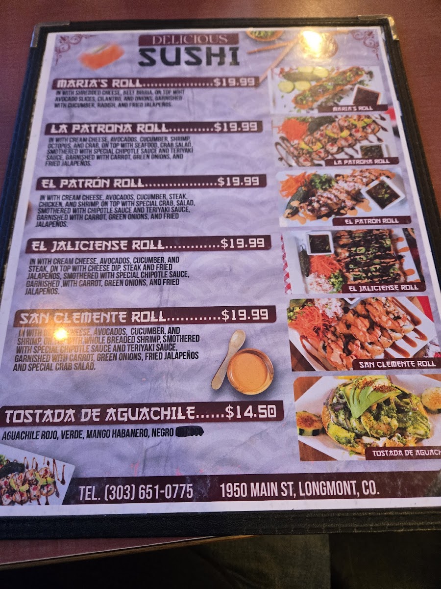 Large flour tortilla smothered with green chili sauce, filled with your choice of meat of melted cheese. Topped with lettuce, pico de gallo, guacamole and sour cream.