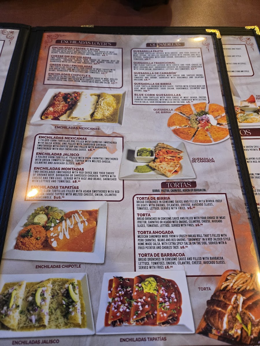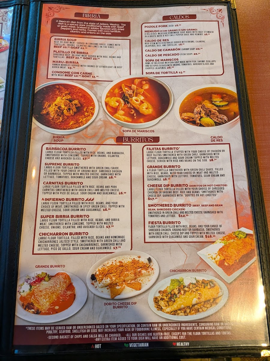 Two large flour tortillas layered with white cheese and your choice of either beef or goat meat. Topped off with onions, cilantro and radishes. Consomme sauce on the side for you to dip.