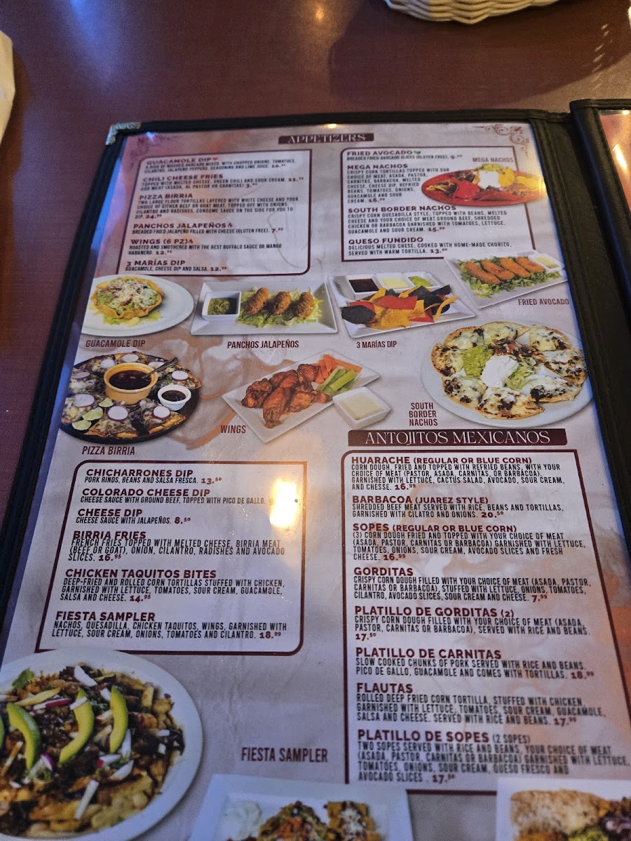 Bread drenched in consomme sauce and filled with your choice of meat (asada, pastor, carnitas or asada) topped off with onions, cilantro, cheese and avocado slices.