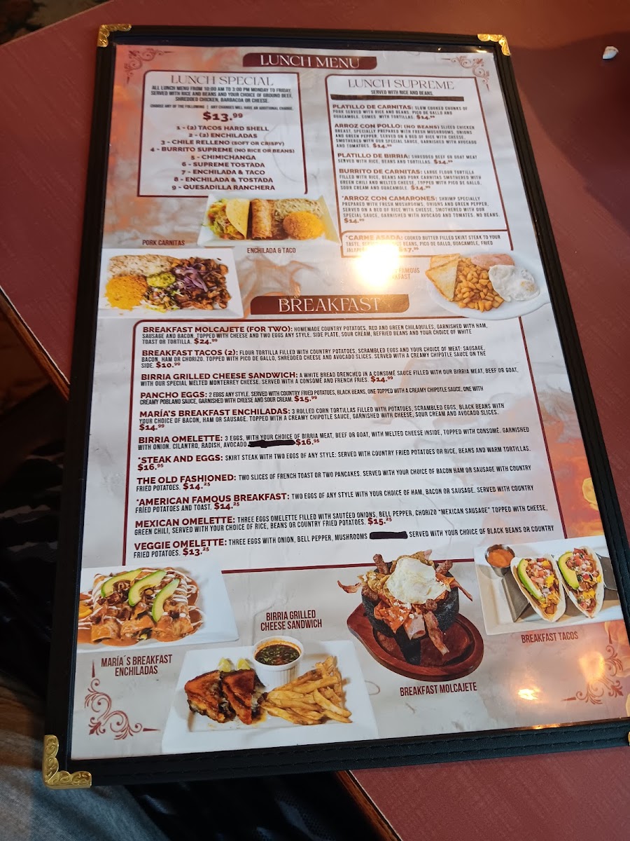 Variety of accompaniments: guacamole, green chili, combined or separate rice and beans, sour cream, cheese, crispy chips, 12 oz salsa, fresh pico de gallo, soft tortillas.